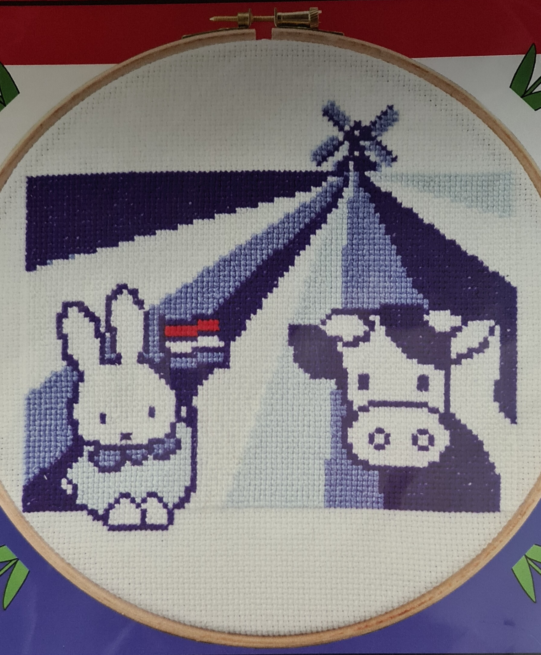 Telpatroon in kruissteek op wit Aïda met dmc borduurgaren