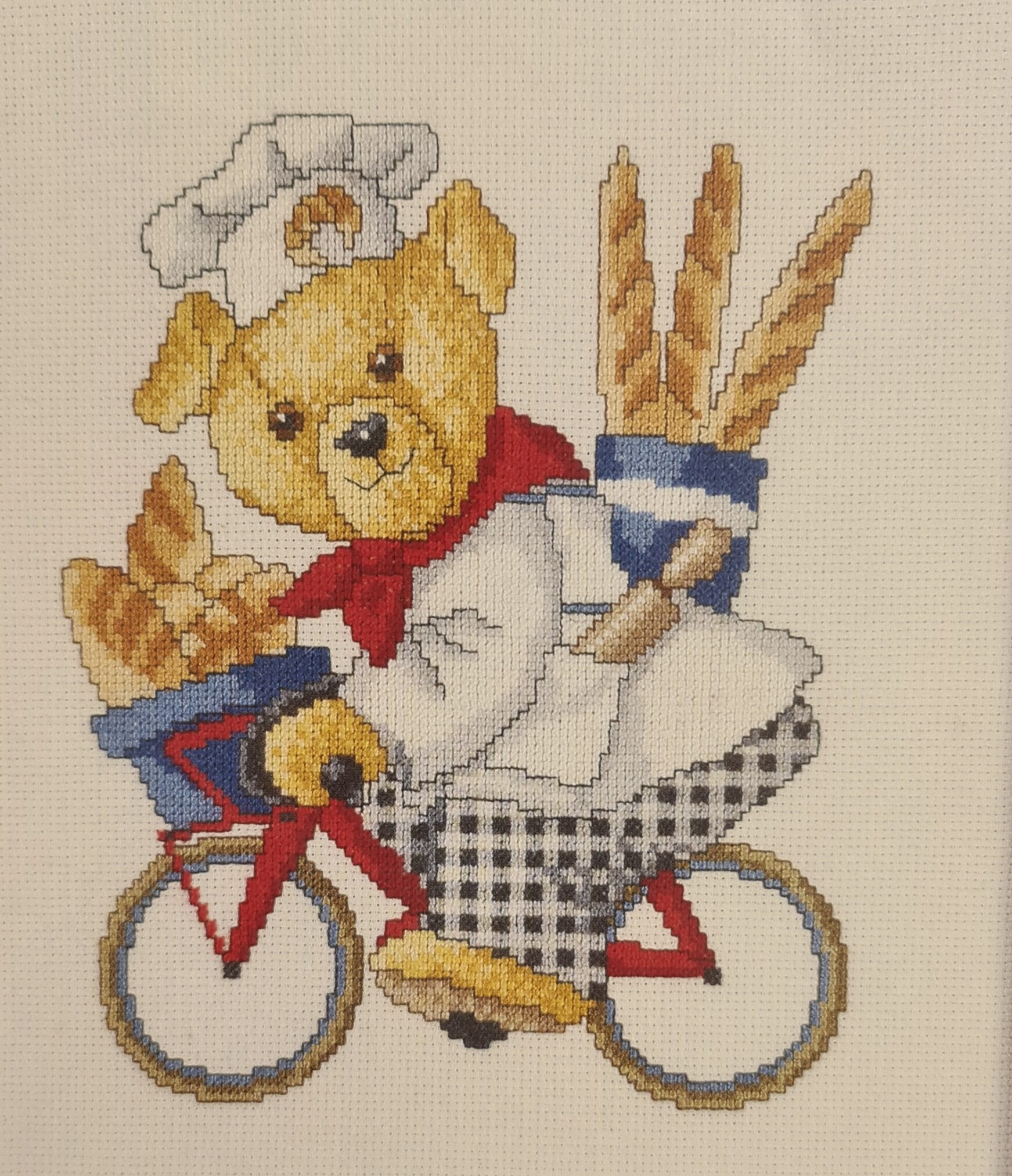 Telpatroon in kruissteek op cremekleurig Aïda met dmc borduurgaren