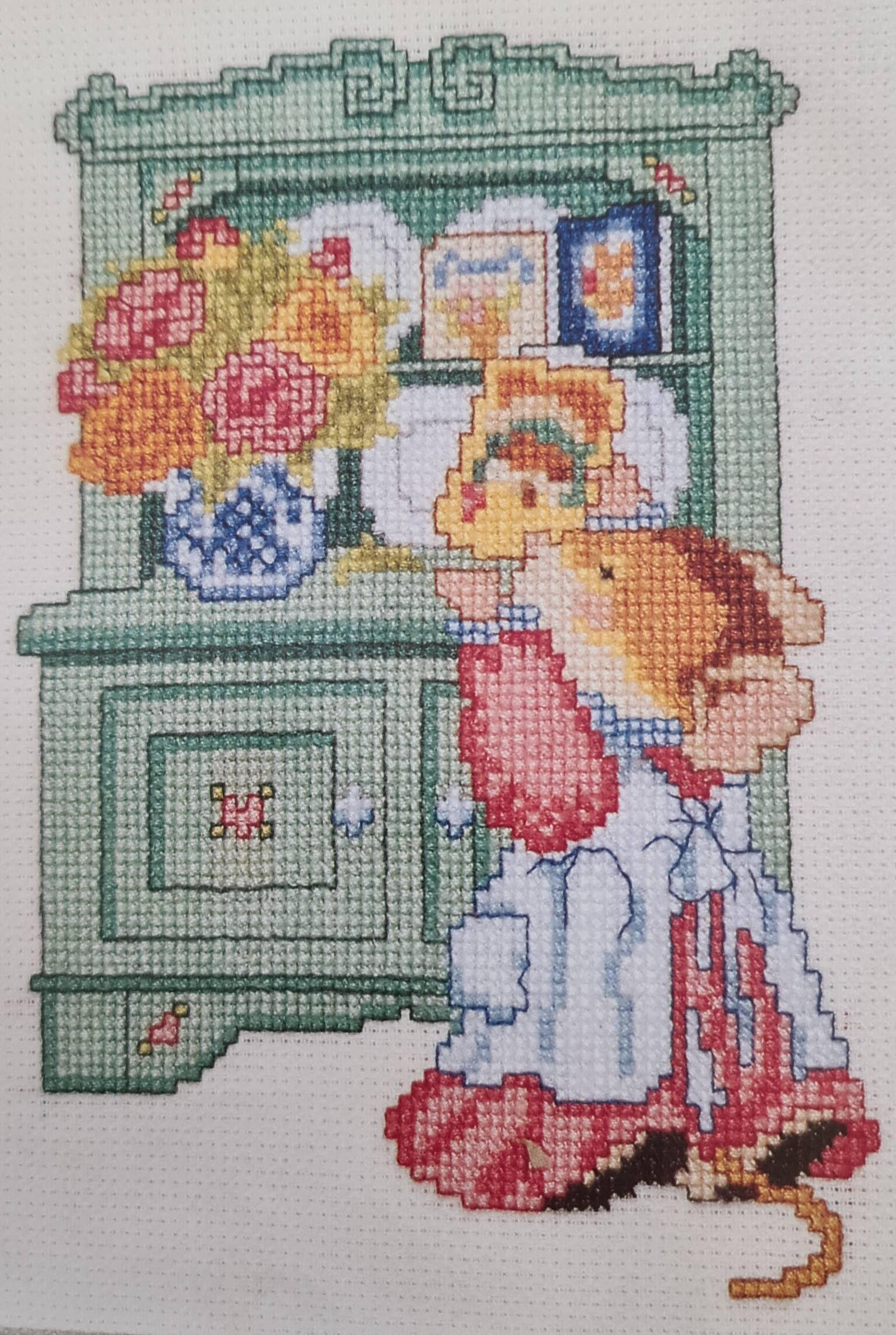 Telpatroon in kruissteek op cremekleurig Aïda met dmc borduurgaren