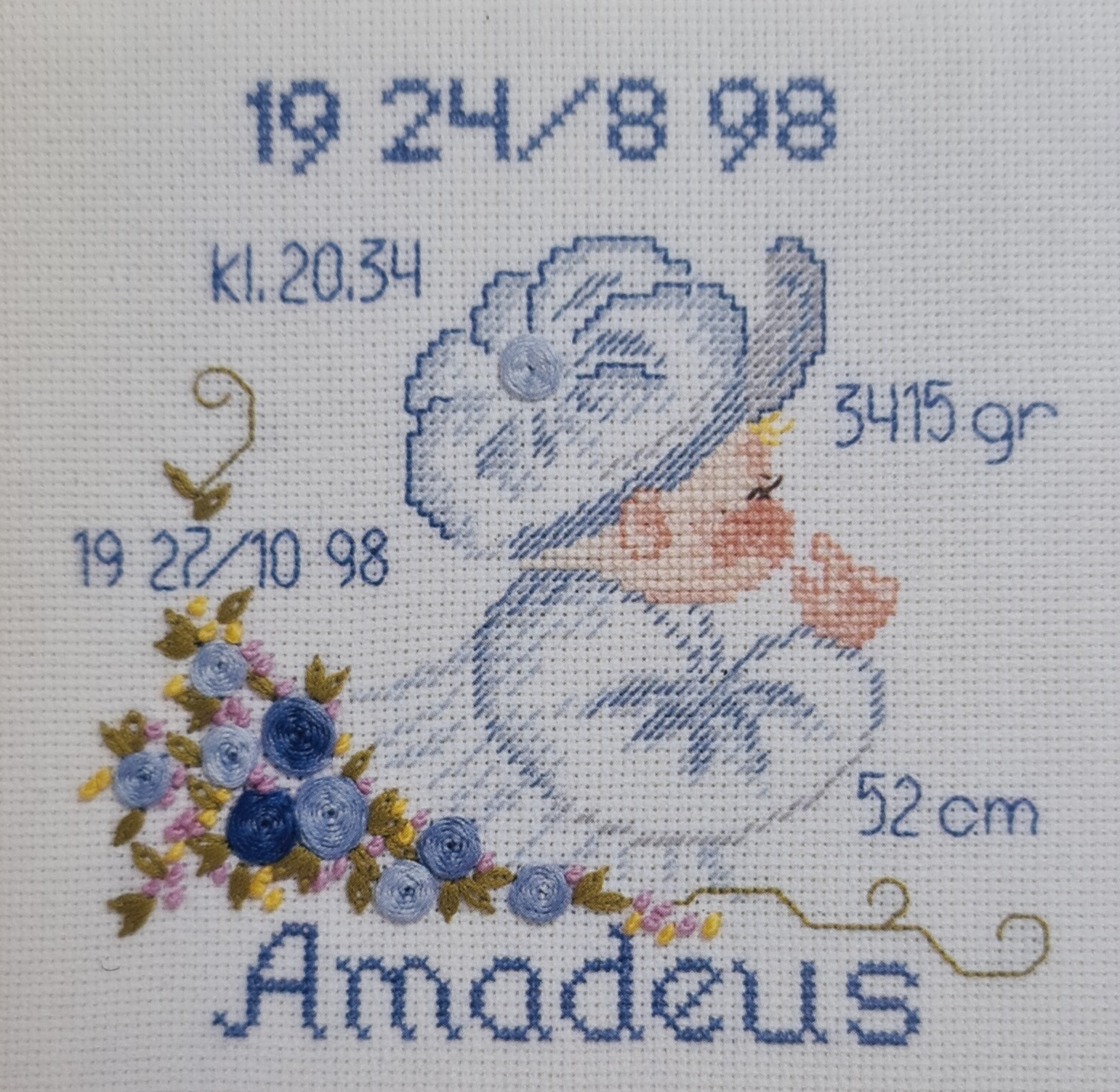 Telpatroon in kruissteek op wit Aïda met dmc borduurgaren