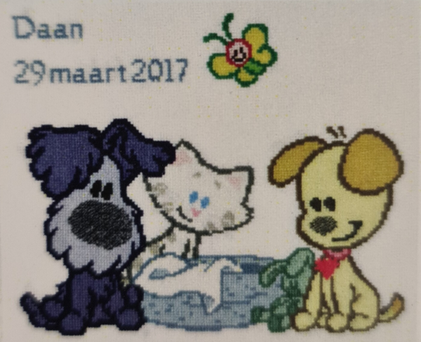 Telpatroon in kruissteek op wit Aïda met borduurgaren met mogelijkheid tot borduren van een van beide varianten