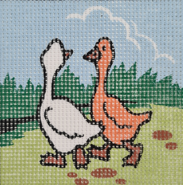 Verschillende motieven voor startende borduurd(st)ers op voorbedrukt stramien zonder borduurgaren.