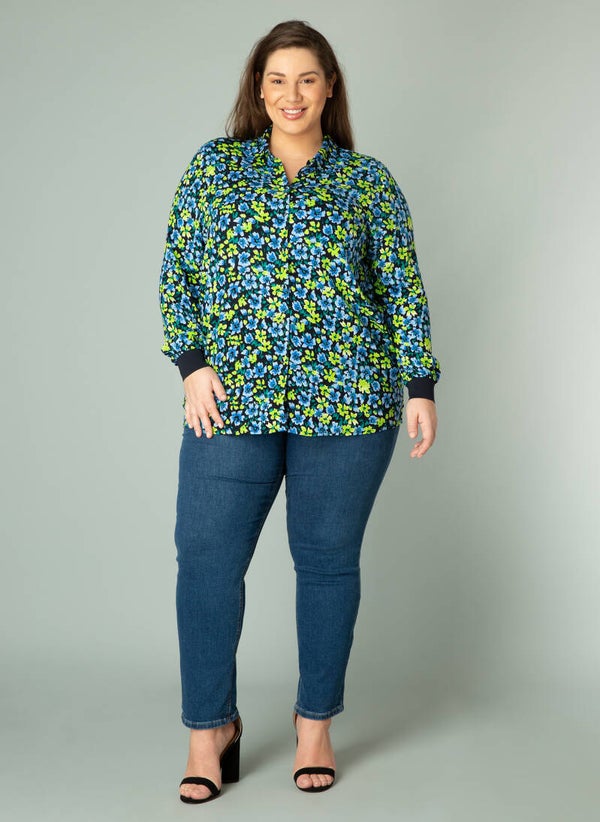 Blouse met een bloemenprint in een regular fit. Deze blouse sluit met kleine zwarte knoopjes en heeft elastische manchetten. Vervaardigd van Ecovero viscose, de duurzamere versie van viscose.