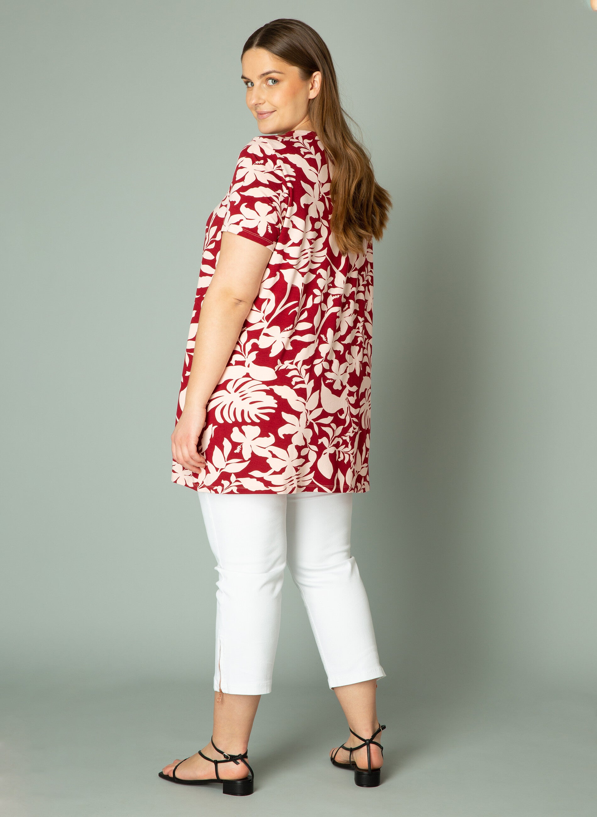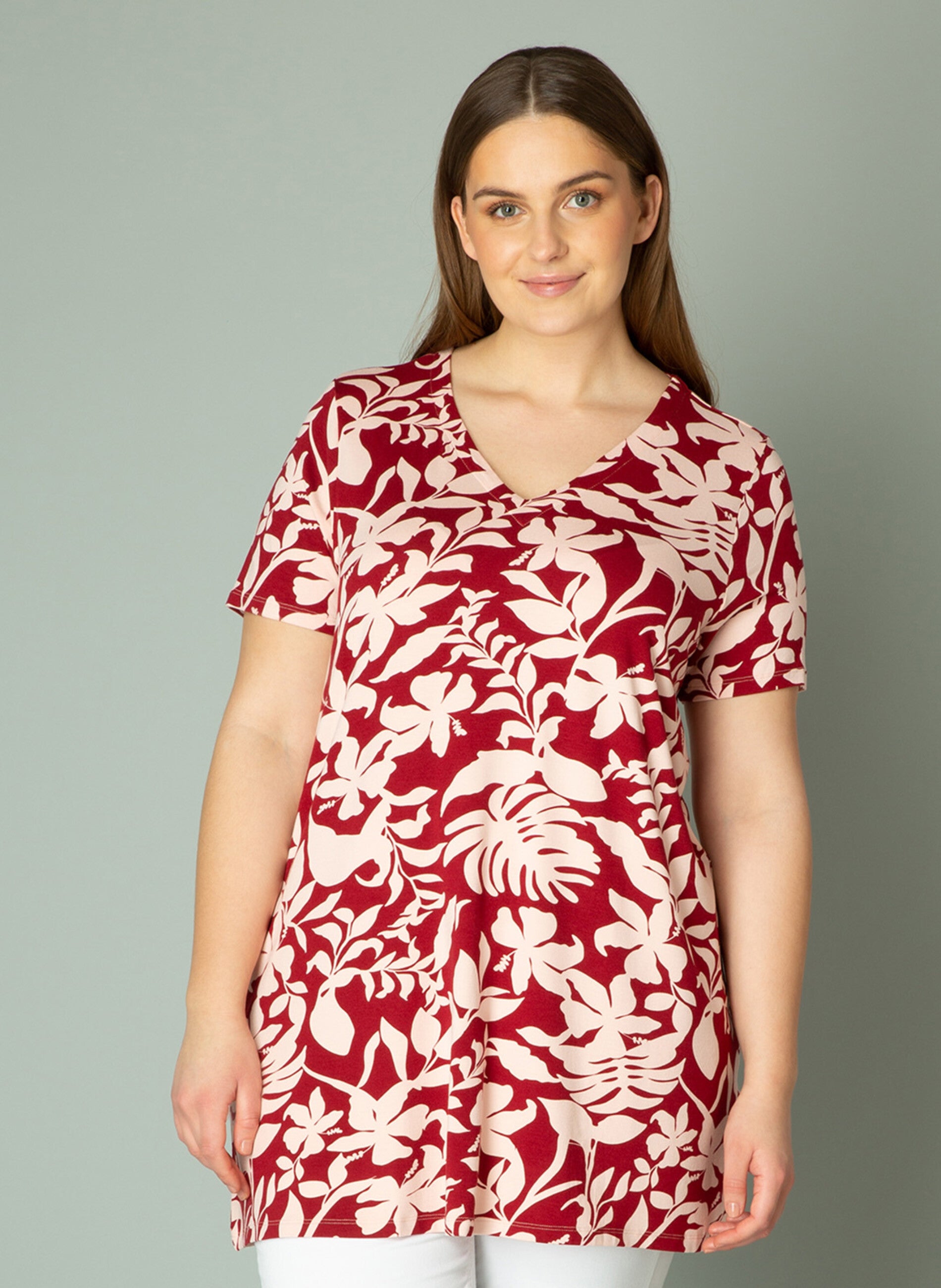 Tuniek in een A-lijn. V- hals en een korte mouw.