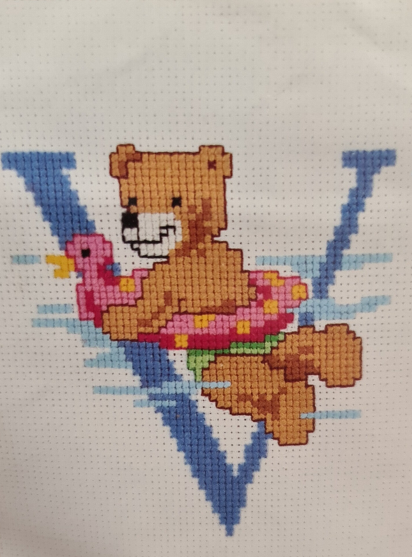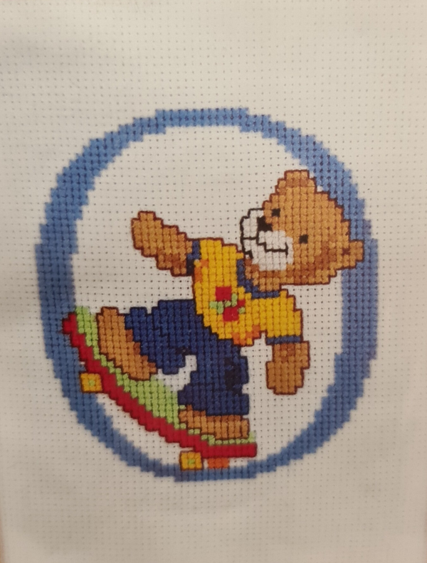 Telpakket op wit Aïda 7 kr/cm met DMC borduurgaren