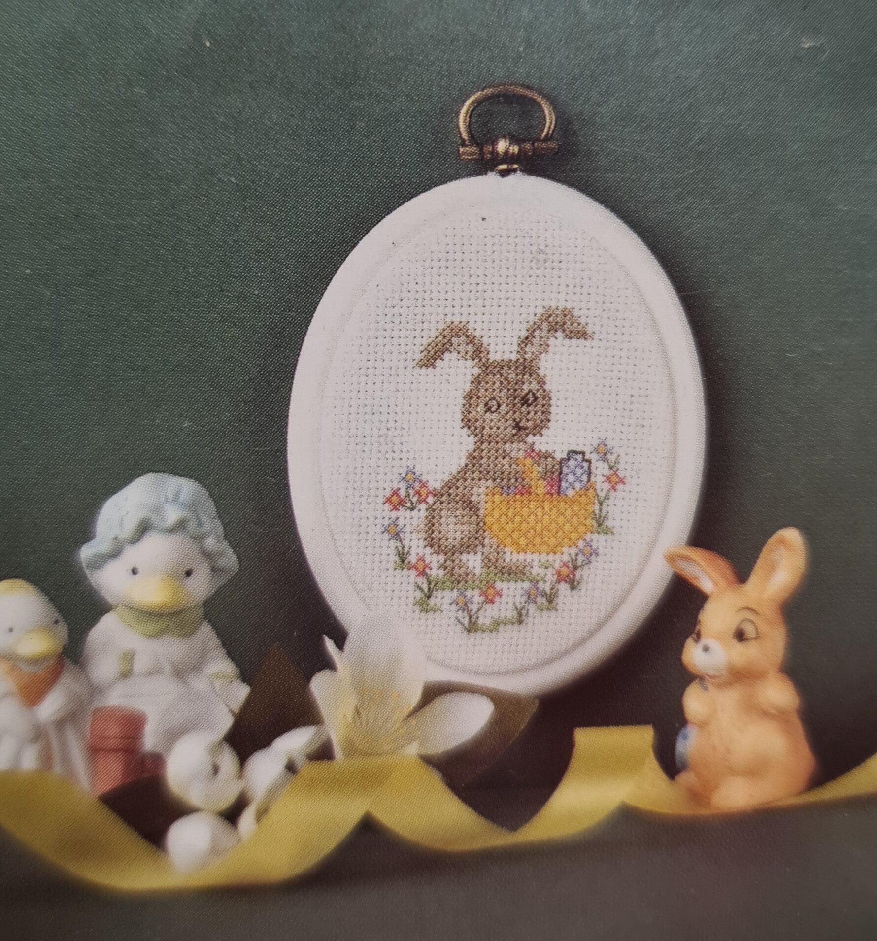 Borduurpakket op witte Aïda met DMC borduurgaren en wit ovaal lijstje