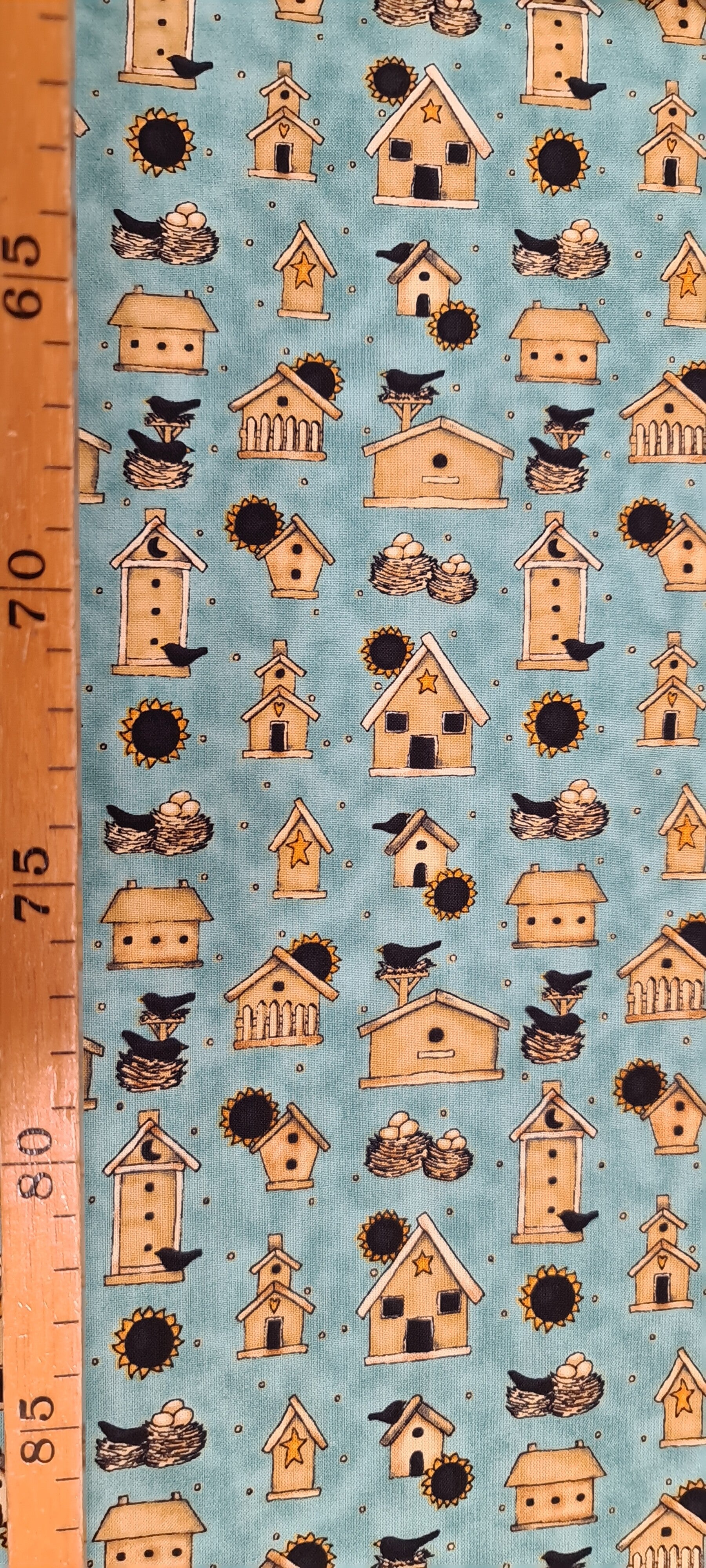Blauwgroene achtergrond met vogelhuisjes en vogelnestjes